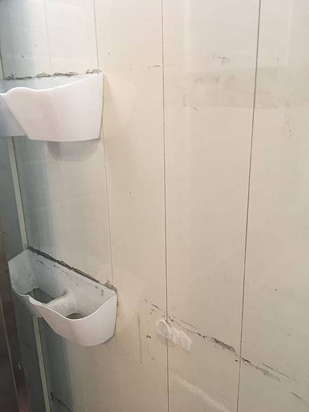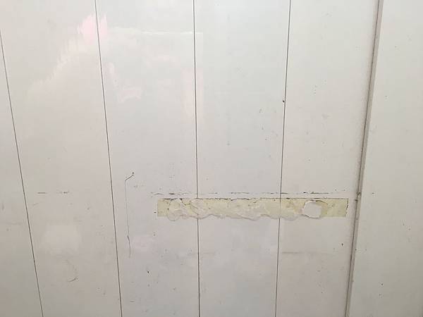 怎麼弄呢?先等等,上場之前,得先清掉牆壁上的殘膠。這一層又一層不同的膠見證著歷史啊!,